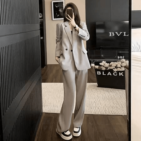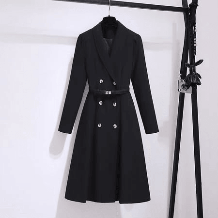 風衣外套+雙排扣長裙兩件式套裝風衣洋裝