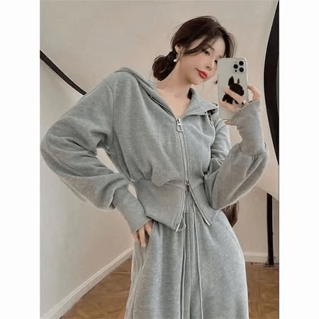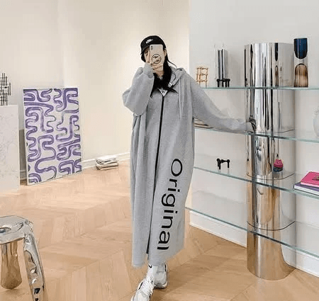 刷毛加厚長款外套 冬季寬鬆拉鍊洋裝