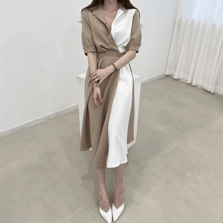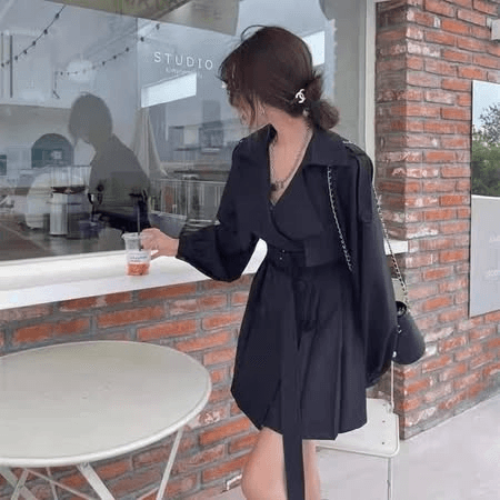 設計感收腰綁帶風衣外套氣質翻領顯瘦西裝連身裙 實拍